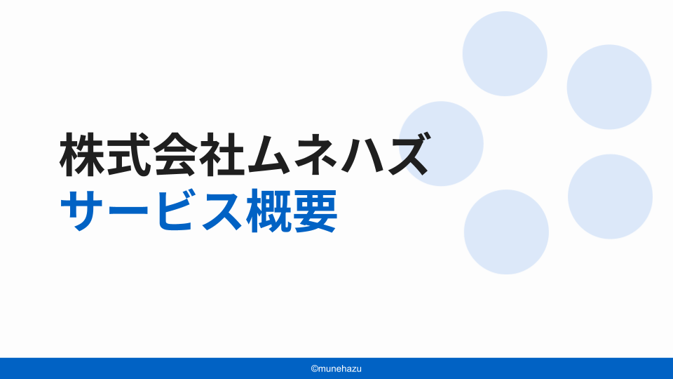 株式会社ムネハズのサービス概要をまとめた資料です。